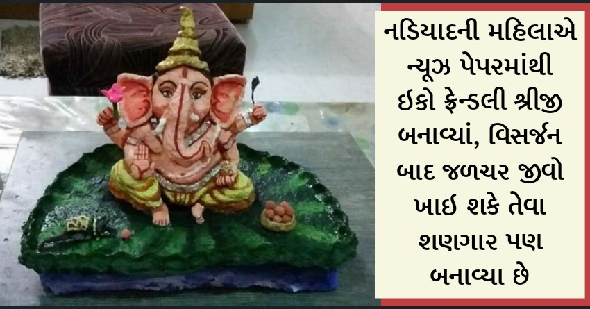નડિયાદની મહિલાએ ન્યૂઝ પેપરમાંથી ઇકો ફ્રેન્ડલી શ્રીજી બનાવ્યાં, વિસર્જન બાદ જળચર જીવો ખાઇ શકે તેવા શણગાર પણ બનાવ્યા છે