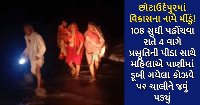 છોટાઉદેપુરમાં વિકાસના નામે મીંડું!: 108 સુધી પહોંચવા રાતે 4 વાગે પ્રસૂતિની પીડા સાથે મહિલાએ પાણીમાં ડૂબી ગયેલા કોઝવે પર ચાલીને જવું પડ્યું