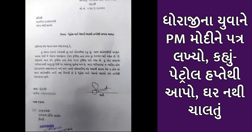 ધોરાજીના યુવાને PM મોદીને પત્ર લખ્યો, કહ્યું- પેટ્રોલ હપ્તેથી આપો, ઘર નથી ચાલતું