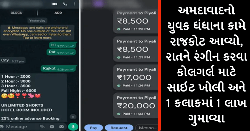 અમદાવાદનો યુવક ધંધાના કામે રાજકોટ આવ્યો, રાતને રંગીન કરવા કોલગર્લ માટે સાઇટ ખોલી અને 1 કલાકમાં 1 લાખ ગુમાવ્યા