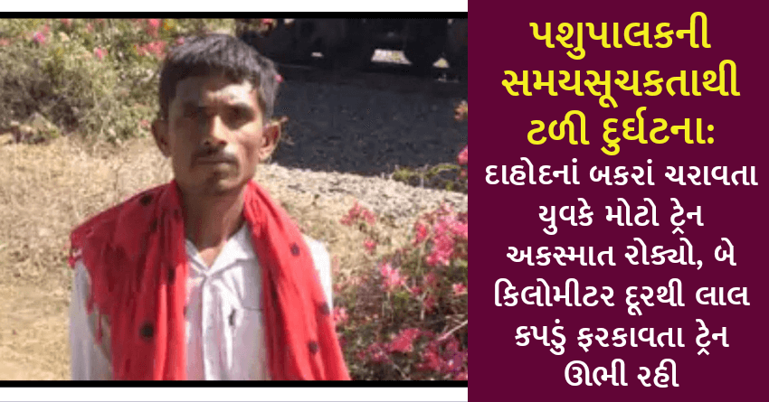 પશુપાલકની સમયસૂચકતાથી ટળી દુર્ઘટના: દાહોદનાં બકરાં ચરાવતા યુવકે મોટો ટ્રેન અકસ્માત રોક્યો, બે કિલોમીટર દૂરથી લાલ કપડું ફરકાવતા ટ્રેન ઊભી રહી