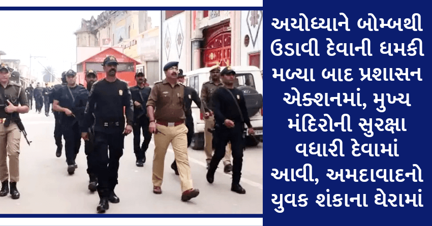 અયોધ્યાને બોમ્બથી ઉડાવી દેવાની ધમકી મળ્યા બાદ પ્રશાસન એક્શનમાં, મુખ્ય મંદિરોની સુરક્ષા વધારી દેવામાં આવી, અમદાવાદનો યુવક શંકાના ઘેરામાં