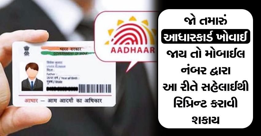 જો તમારું આધારકાર્ડ ખોવાઈ જાય તો મોબાઈલ નંબર દ્વારા આ રીતે સહેલાઈથી રિપ્રિન્ટ કરાવી શકાય છે