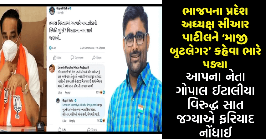 તમને જણાવી દઈએ કે, 18 મેં 2021ના દિવસે સોશિયલ મીડિયામાં AAP પ્રદેશ પ્રમુખ ગોપાલ ઇટાલીયાની એક પોસ્ટ ઉપર અન્ય સોશિયલ મીડિયા યુઝર્સ ઉમેશ મારડિયા હિન્દુ પ્રજાપતિએ કોમેન્ટ લખી હતી જેમાં તેણે લખ્યું હતું કે ” ગોપાલભાઈ, મેળ પડે તો એક બ્લેન્ડર મળી જાય તેવું કરો, નવસારી જલાલપુરમાં પાણીની સગવડ છે અને હા બે મિત્રો પણ મારી સાથે બેસવા વાળાને બ્લેન્ડર હોય તો પણ ચાલશે ” દારૂની વિવિધ બ્રાન્ડસ અંગે લખ્યું હતું. જેના જવાબમાં ગોપાલ ઇટાલીયાએ વિવાદાસ્પદ કોમેન્ટ લખી હતી. તેમણે ભાજપના પ્રદેશ પ્રમુખનું નામ લઈને લખ્યું કે, માજી બુટલેગર અને હાલના નવસારીના સાંસદ સી.આર.પાટીલ નો સંપર્ક કરો મેળ પડી જશે”.