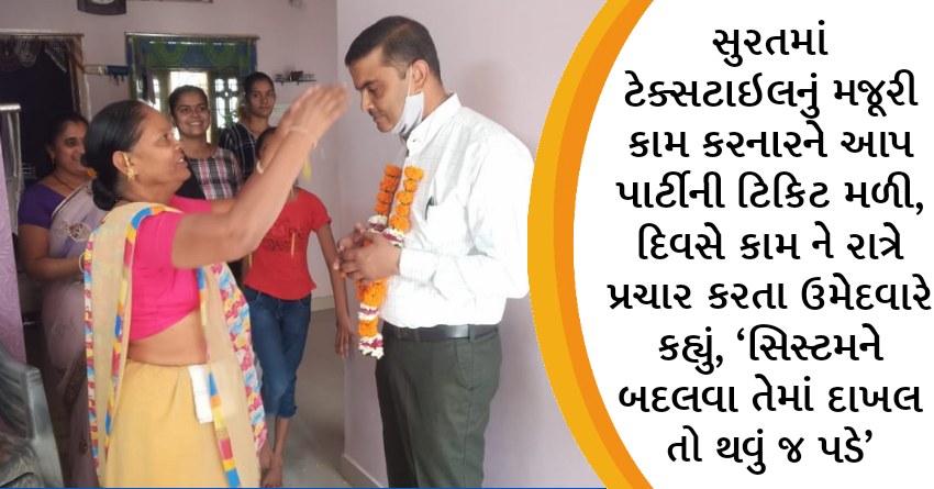 સુરતમાં ટેક્સટાઇલનું મજૂરી કામ કરનારને આપ પાર્ટીની ટિકિટ મળી, દિવસે કામ ને રાત્રે પ્રચાર કરતા ઉમેદવારે કહ્યું, ‘સિસ્ટમને બદલવા તેમાં દાખલ તો થવું જ પડે’