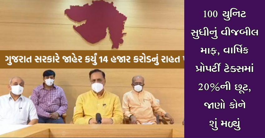 ગુજરાત સરકારે જાહેર કર્યું 14 હજાર કરોડનું રાહત પેકેજ, 100 યુનિટ સુધીનું વીજબીલ માફ, વાર્ષિક પ્રોપર્ટી ટેક્સમાં 20%ની છૂટ, જાણો કોને શું મળ્યું