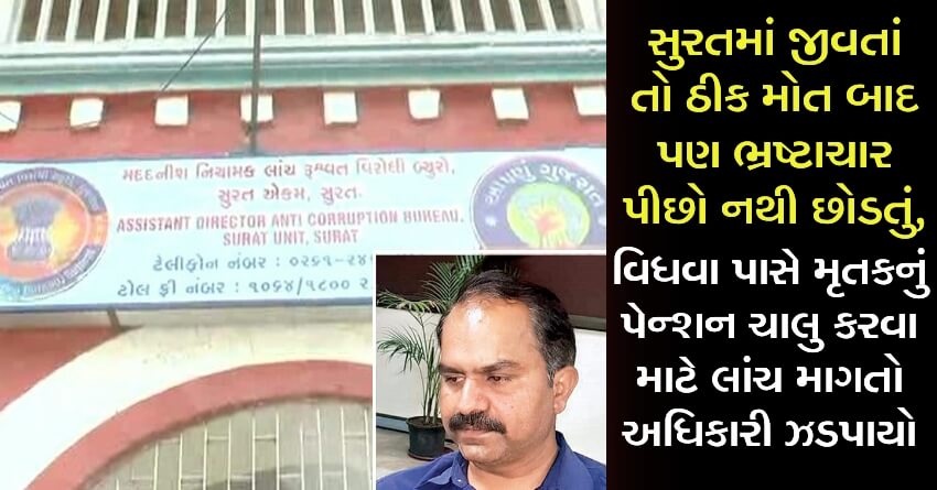 સુરતમાં જીવતાં તો ઠીક મોત બાદ પણ ભ્રષ્ટાચાર પીછો નથી છોડતું, વિધવા પાસે મૃતકનું પેન્શન ચાલુ કરવા માટે લાંચ માગતો અધિકારી ઝડપાયો