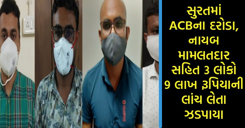 સુરતમાં ACBના દરોડા, નાયબ મામલતદાર સહિત 3 લોકો 9 લાખ રૂપિયાની લાંચ લેતા ઝડપાયા