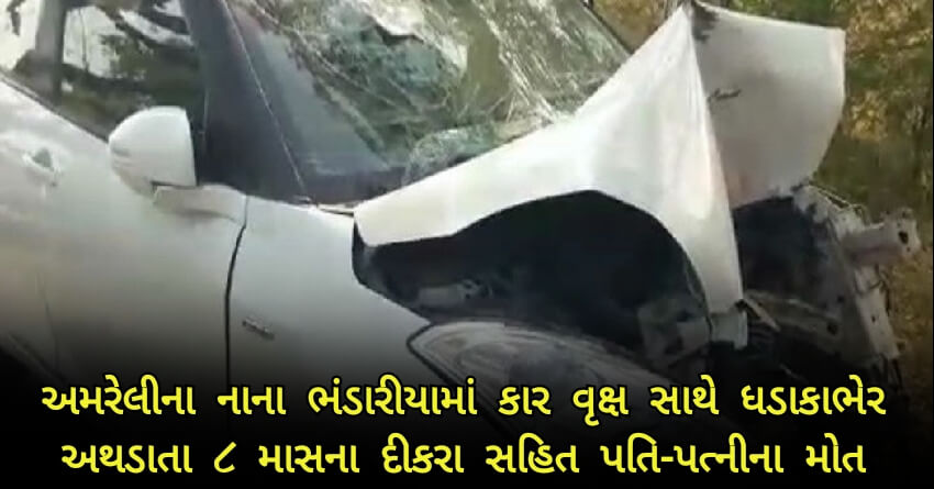 અમરેલીના નાના ભંડારીયામાં કાર વૃક્ષ સાથે ધડાકાભેર અથડાતા 8 માસના દીકરા સહિત પતિ-પત્નીના મોત