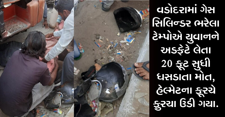 વડોદરામાં ગેસ સિલિન્ડર ભરેલા ટેમ્પોએ યુવાનને અડફેટે લેતા 20 ફૂટ સુધી ધસડાતા મોત, હેલ્મેટના ફૂરચે ફુરચા ઉડી ગયા