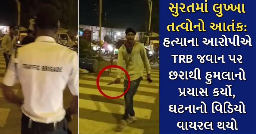 સુરતમાં લુખ્ખા તત્વોનો આતંક: હત્યાના આરોપીએ TRB જવાન પર છરાથી હુમલાનો પ્રયાસ કર્યો, ઘટનાનો વિડિયો વાયરલ થયો