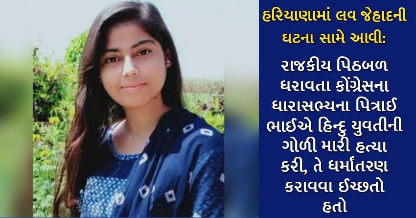 હરિયાણામાં લવ જેહાદની ઘટના સામે આવી: રાજકીય પિઠબળ ધરાવતા કોંગ્રેસના ધારાસભ્યના પિત્રાઈ ભાઈએ હિન્દુ યુવતીની ગોળી મારી હત્યા કરી, તે ધર્માંતરણ કરાવવા ઈચ્છતો હતો