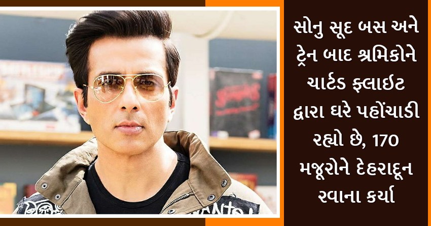 સોનુ સૂદ છેલ્લા મહિનાથી અંદાજે રોજ 1000 જેટલા શ્રમિકોને તેમના ઘરે પહોંચાડી રહ્યો છે. બસ અને ટ્રેન બાદ હવે સોનુ ચાર્ટડ ફ્લાઇટ મારફતે પ્રવાસીને તેમના વતન રવાના કરી રહ્યો છે. હાલમાં જ તેણે 170 પ્રવાસી મજૂરોને મુંબઈથી ચાર્ટડ ફ્લાઇટ મારફતે દેહરાદૂન પહોંચાડવાની વ્યવસ્થા કરી છે.