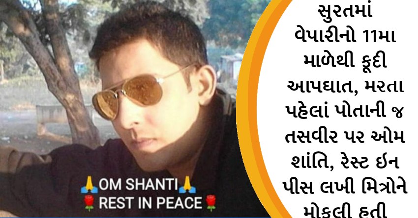 સુરતમાં વેપારીનો 11મા માળેથી કૂદી આપઘાત, મરતા પહેલાં પોતાની જ તસવીર પર ઓમ શાંતિ, રેસ્ટ ઇન પીસ લખી મિત્રોને મોકલી હતી