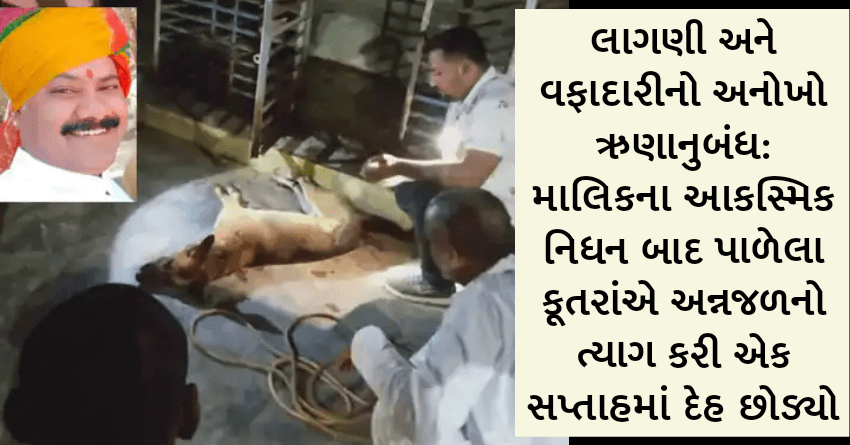 લાગણી અને વફાદારીનો અનોખો ઋણાનુબંધ: માલિકના આકસ્મિક નિધન બાદ પાળેલા કૂતરાંએ અન્નજળનો ત્યાગ કરી એક સપ્તાહમાં દેહ છોડ્યો