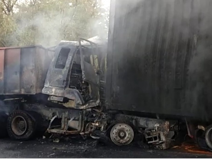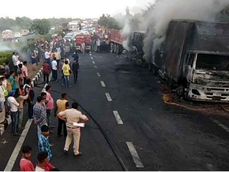 અમદાવાદ-વડોદરા એક્સપ્રેસ હાઈવે પર 7 કલાક સુધી સળગતું રહ્યું કેમિકલ ભરેલું કન્ટેનર, 25 કિમી સુધી ટ્રાફિક જામ