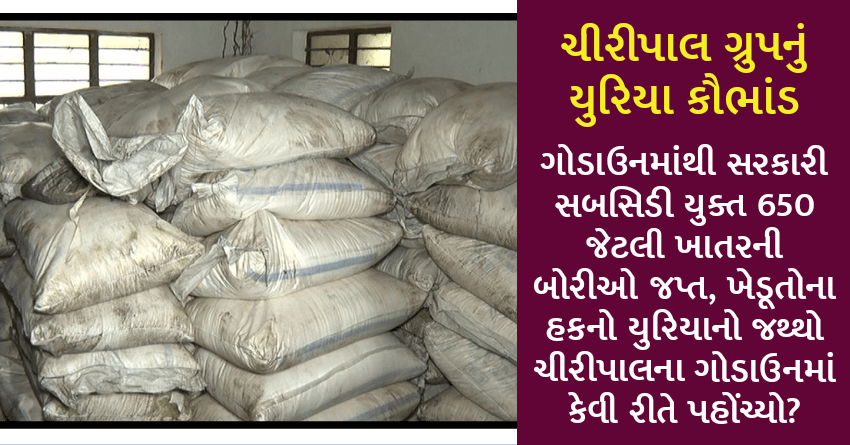 ચીરીપાલ ગ્રુપનું યુરિયા કૌભાંડ, ગોડાઉનમાંથી સરકારી સબસિડી યુક્ત 650 જેટલી ખાતરની બોરીઓ જપ્ત, ખેડૂતોના હકનો યુરિયાનો જથ્થો ચીરીપાલના ગોડાઉનમાં કેવી રીતે પહોંચ્યો?