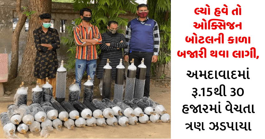 લ્યો હવે તો ઓક્સિજન બોટલની કાળા બજારી થવા લાગી, અમદાવાદમાં રૂ.15થી 30 હજારમાં વેચતા ત્રણ ઝડપાયા