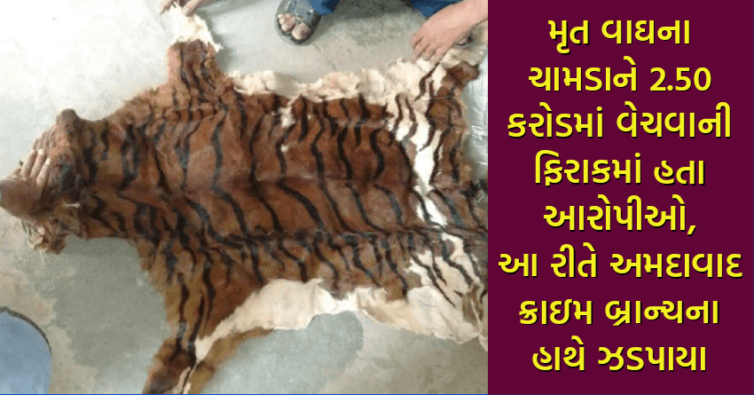મૃત વાઘના ચામડાને 2.50 કરોડમાં વેચવાની ફિરાકમાં હતા આરોપીઓ, આ રીતે અમદાવાદ ક્રાઇમ બ્રાન્ચના હાથે ઝડપાયા