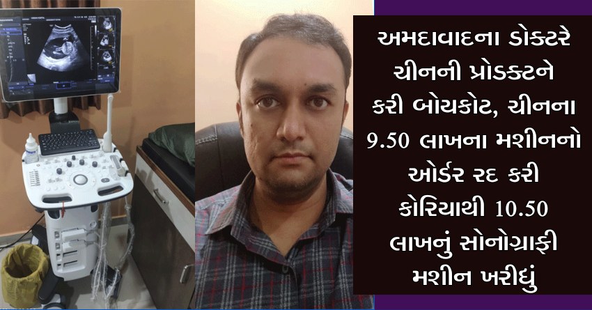 અમદાવાદના ડોક્ટરે ચીનની પ્રોડક્ટને કરી બોયકોટ, ચીનના 9.50 લાખના મશીનનો ઓર્ડર રદ કરી કોરિયાથી 10.50 લાખનું સોનોગ્રાફી મશીન ખરીદ્યું