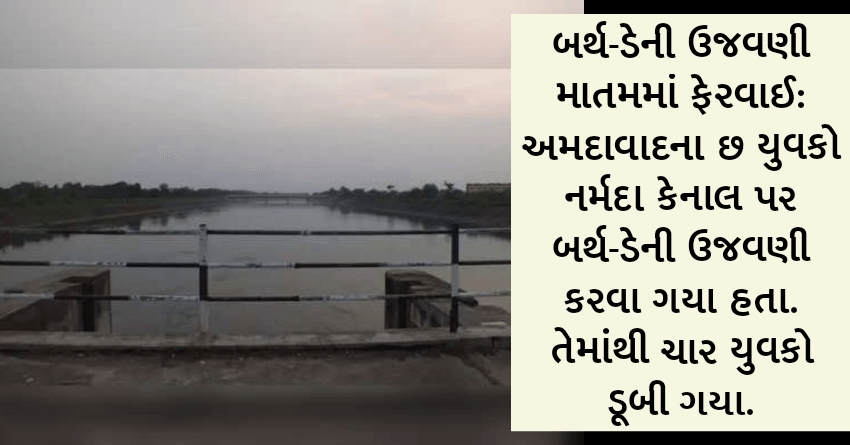 બર્થ-ડેની ઉજવણી માતમમાં ફેરવાઈ: અમદાવાદના છ યુવકો નર્મદા કેનાલ પર બર્થ-ડેની ઉજવણી કરવા ગયા હતા. તેમાંથી ચાર યુવકો ડૂબી ગયા