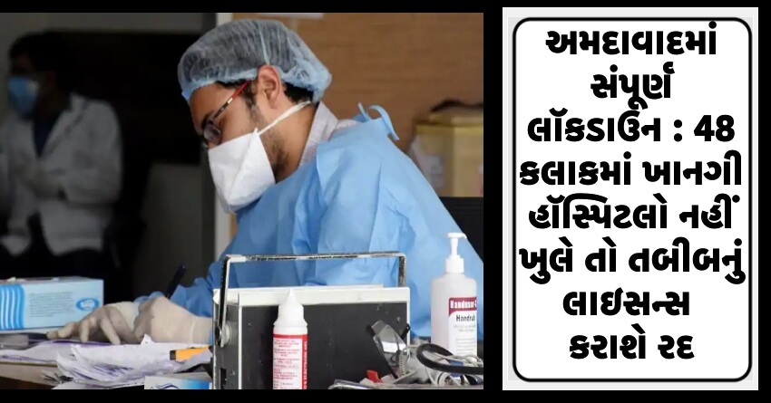 અમદાવાદમાં સંપૂર્ણ લૉકડાઉન : ખાનગી હૉસ્પિટલો ખુલ્લી નહીં રહે તો તબીબનું લાઇસન્સ કરાશે રદ