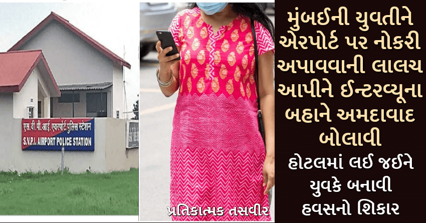 મુંબઈની યુવતીને એરપોર્ટ પર નોકરી અપાવવાની લાલચ આપીને ઈન્ટરવ્યૂના બહાને અમદાવાદ બોલાવી, હોટલમાં લઈ જઈને યુવકે બનાવી હવસનો શિકાર
