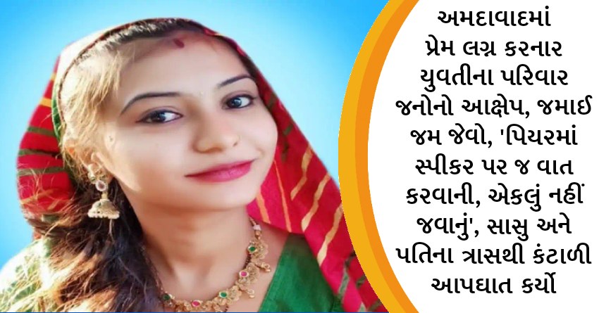 અમદાવાદમાં પ્રેમ લગ્ન કરનાર યુવતીના પરિવાર જનોનો આક્ષેપ, જમાઈ જમ જેવો, ‘પિયરમાં સ્પીકર પર જ વાત કરવાની, એકલું નહીં જવાનું’, સાસુ અને પતિના ત્રાસથી કંટાળી આપઘાત કર્યો