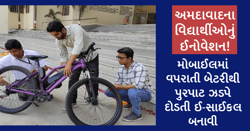 અમદાવાદના વિદ્યાર્થીઓનું ઈનોવેશન! મોબાઈલમાં વપરાતી બેટરીથી પુરપાટ ઝડપે દોડતી ઈ-સાઈકલ બનાવી