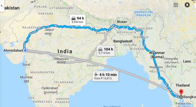અમદાવાદથી થાઈલેન્ડ વચ્ચે NH27થી 4944 કિ.મીનું અંતર છે. આ અંતર કાપતા તમને લગભગ પાંચેક દિવસનો સમય લાગશે પરંતુ આ રોડ ટ્રિપ તમને આજીવન યાદ રહી જશે. દિલ્હીથી થાઈલેન્ડ પહોંચવામાં ત્રણેક દિવસનો સમય લાગી જાય છે. થાઈલેન્ડ જવા માટે ફ્લાઈટ લેવા કરતા રોડ ટ્રિપ વધુ સારો ઓપ્શન એટલા માટે છે કારણ કે તમને રસ્તામાં નોર્થ-ઈસ્ટના સુંદર પહાડો અને બેગાન અને યેનગોન પાસે અદભૂત પગોડા જોવા મળશે. આ અનુભવ તમે જીવનભર ભૂલી નહિ શકો. તમારી આ જર્નીની એકેએક મિનિટ યાદગાર બની જશે.