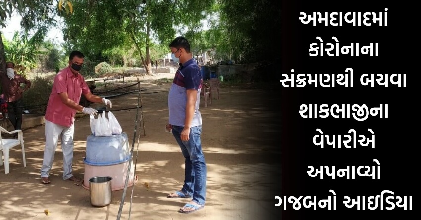 અમદાવાદમાં કોરોનાના સંક્રમણથી બચવા શાકભાજીના વેપારીએ અપનાવ્યો ગજબનો આઇડિયા