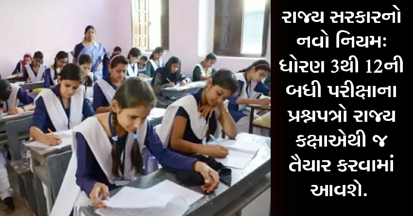 રાજ્ય સરકારનો નવો નિયમ: ધોરણ 3થી 12ની બધી પરીક્ષાના પ્રશ્નપત્રો રાજ્ય કક્ષાએથી જ તૈયાર કરવામાં આવશે, ઉત્તરવહીનું મૂલ્યાંકન અન્ય શાળાના શિક્ષકો કરશે