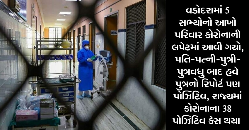 વડોદરામાં 5 સભ્યોનો આખો પરિવાર કોરોનાની લપેટમાં આવી ગયો, પતિ-પત્ની-પુત્રી-પુત્રવધુ બાદ હવે પુત્રનો રિપોર્ટ પણ પોઝિટિવ, રાજ્યમાં કોરોનાના 38 પોઝિટિવ કેસ થયા