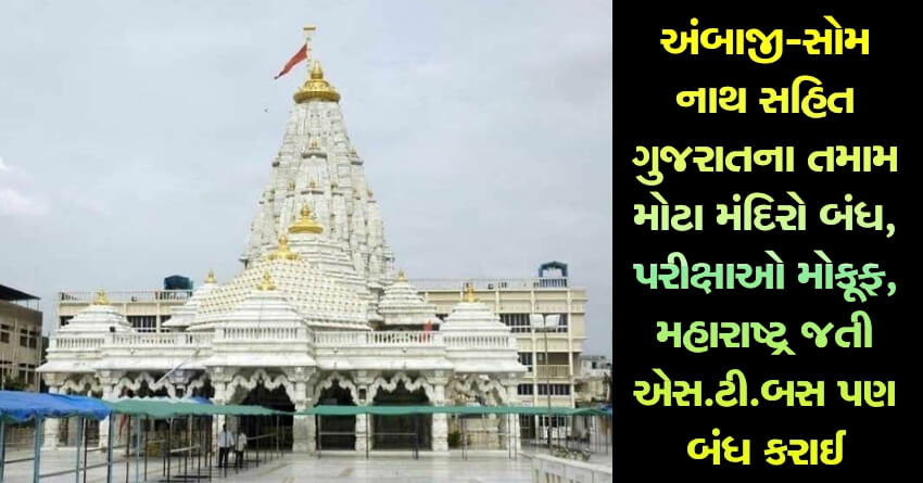 અંબાજી-સોમનાથ સહિત ગુજરાતના તમામ મોટા મંદિરો બંધ, પરીક્ષાઓ મોકૂફ, મહારાષ્ટ્ર જતી એસ.ટી.બસ પણ બંધ કરાઈ