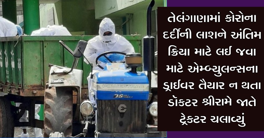 તેલંગાણામાં કોરોના દર્દીની લાશને અંતિમ ક્રિયા માટે લઈ જવા માટે એમ્બ્યુલન્સના ડ્રાઈવર તૈયાર ન થતા ડૉકટર શ્રીરામે જાતે ટ્રેકટર ચલાવ્યું