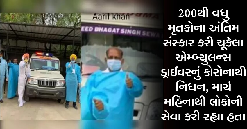 200થી વધુ મૃતકોના અંતિમ સંસ્કાર કરી ચૂકેલા એમ્બ્યુલન્સ ડ્રાઈવરનું કોરોનાથી નિધન, માર્ચ મહિનાથી લોકોની સેવા કરી રહ્યા હતા