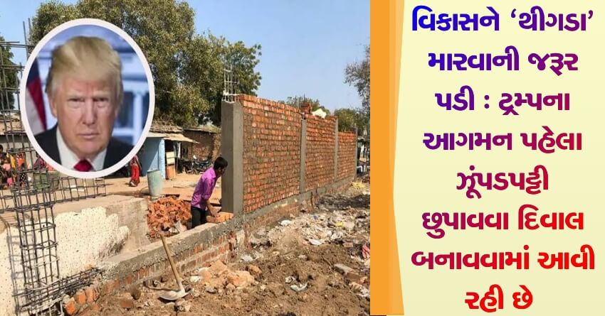 વિકાસને ‘થીગડા’ મારવાની જરૂર પડી : ટ્રમ્પના આગમન પહેલા ઝૂંપડપટ્ટી છુપાવવા દિવાલ બનાવવામાં આવી રહી છે