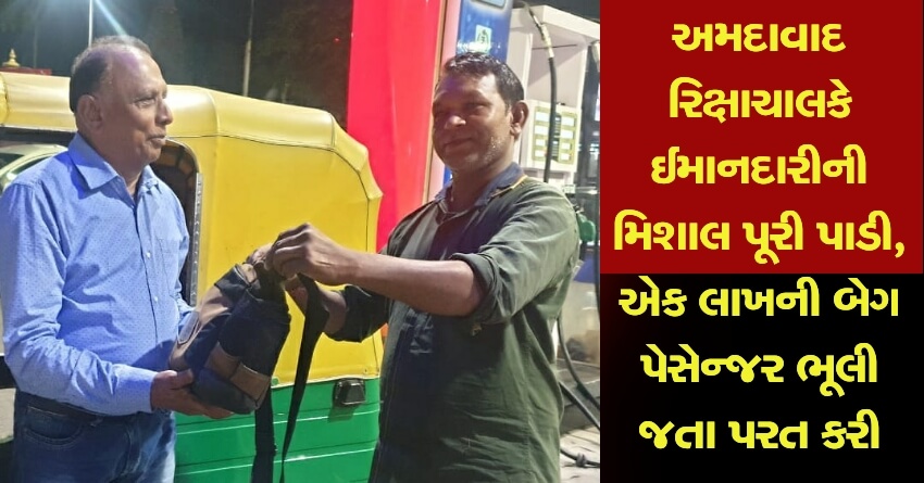 અમદાવાદ રિક્ષાચાલકે ઈમાનદારીની મિશાલ પૂરી પાડી, એક લાખની બેગ પેસેન્જર ભૂલી જતા પરત કરી