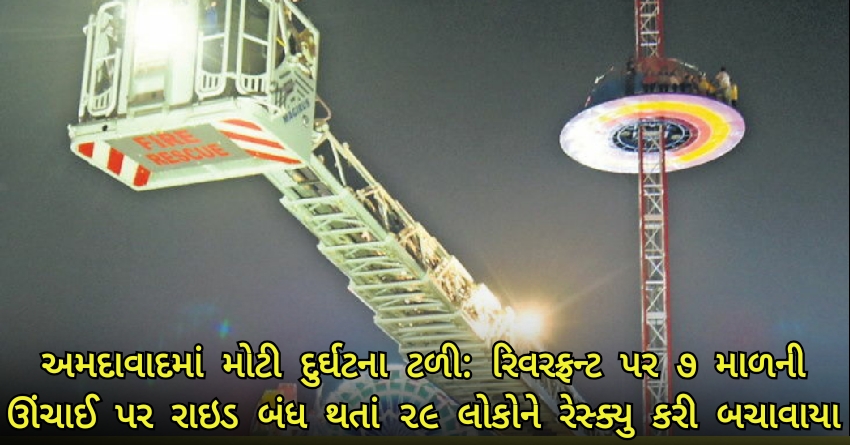 અમદાવાદમાં મોટી દુર્ઘટના ટળી / રિવરફ્રન્ટ પર 7 માળની ઊંચાઈ પર રાઇડ બંધ થતાં 29 લોકોને રેસ્ક્યુ કરી બચાવાયા
