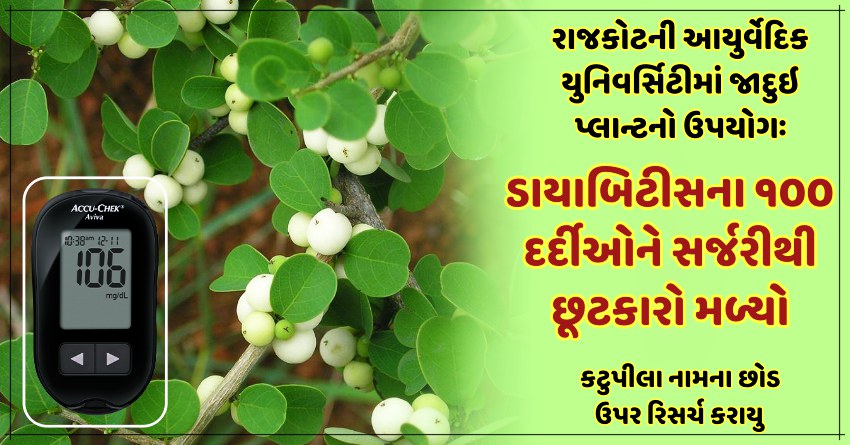 રાજકોટમાં આવેલી ગુજરાત આયુર્વેદ યુનિવર્સિટીમાં આ જાદુઈ પ્લાન્ટનો ઉપયોગ થઈ રહ્યો છે અને તેનો વૈજ્ઞાનિક અભ્યાસ પણ કરવામાં આવ્યો છે. આ પ્લાન્ટની મદદથી લગભગ 100 ડાયાબિટીસના દર્દઓને સર્જરીથી છૂટકારો મળ્યો છે.