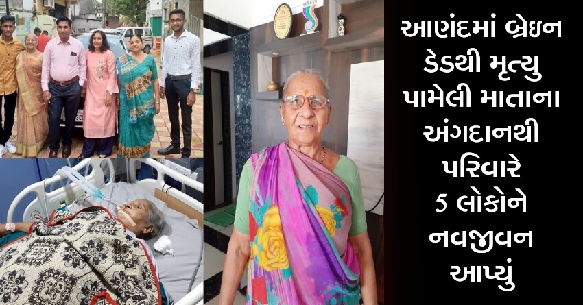 મૃત્યુ પછી અંગદાનથી એક કરતા વધુ લોકોનું જીવન બચાવી શકાય છે. લોકોને અંગદાન વિશે જાગૃત કરવા માટે દેશની અલગ-અલગ સંસ્થાઓ દ્વારા અનેક અભિયાન ચલાવવામાં આવે છે. અંગદાન કરીને વ્યક્તિ મૃત્યુ બાદ પણ અન્ય લોકોમાં જીવતો રહે છે. આવો જ એક કિસ્સો આણંદમાં પણ બન્યો છે. પુત્રોએ પોતાની 75 વર્ષિય માતાના અંગદાનના નિર્ણયથી આજે પાંચ વક્તિઓને નવજીવન મળ્યું છે.