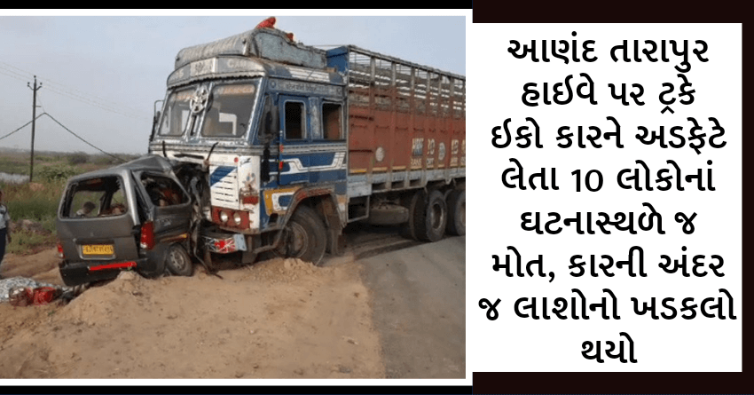 આણંદ તારાપુર હાઇવે પર ટ્રકે ઇકો કારને અડફેટે લેતા 10 લોકોનાં ઘટનાસ્થળે જ મોત, કારની અંદર જ લાશોનો ખડકલો થયો
