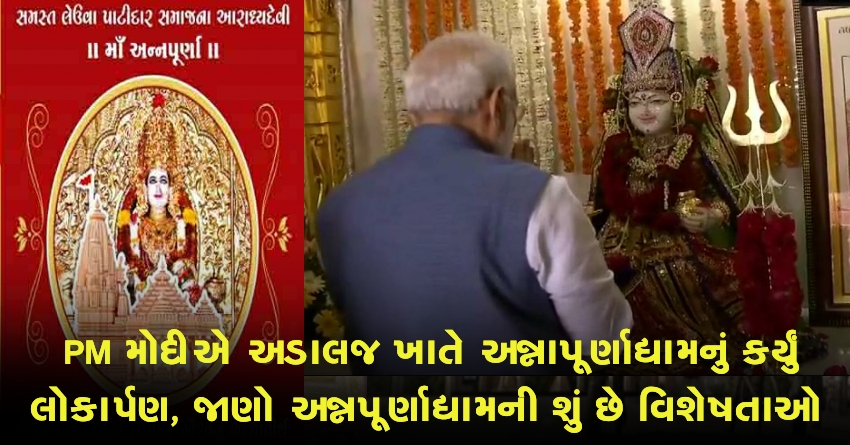 પ્રધાનમંત્રી મોદીની ગુજરાત મુલાકાતનો આજે બીજો દિવસ છે. બીજા દિવસે પીએમ મોદીએ લેઉવા પાટીદાર સમાજ દ્વારા નિર્મિત અડાલજમાં આવેલા અન્નપૂર્ણા મંદિરના કાર્યક્રમમાં હાજરી આપી હતી. આ દરમિયાન પીએમ મોદીએ વિવિધ ભવનોનું ભૂમિપૂજન પણ કરાવ્યું.