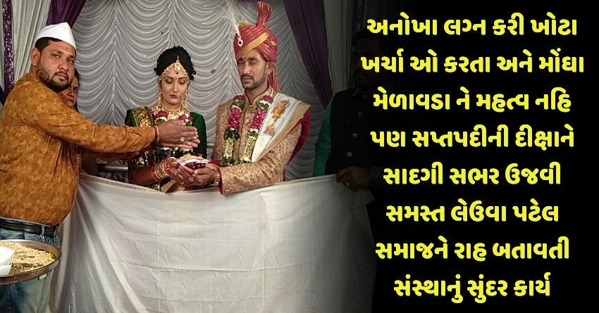અનોખા લગ્ન કરી ખોટા ખર્ચા ઓ કરતા અને મોંઘા મેળાવડા ને મહત્વ નહિ પણ સપ્તપદીની દીક્ષાને સાદગી સભર ઉજવી સમસ્ત લેઉવા પટેલ સમાજને રાહ બતાવતી સંસ્થાનું સુંદર કાર્ય