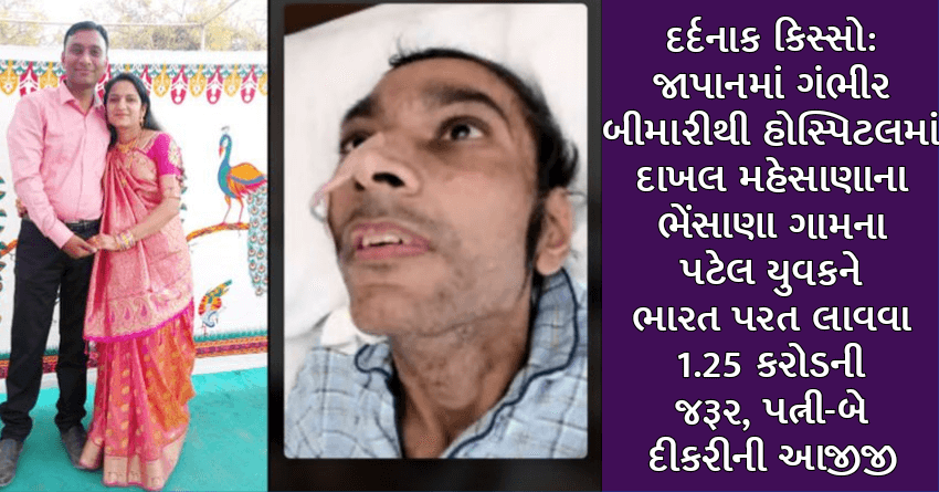 દર્દનાક કિસ્સો: જાપાનમાં ગંભીર બીમારીથી હોસ્પિટલમાં દાખલ મહેસાણાના ભેંસાણા ગામના પટેલ યુવકને ભારત પરત લાવવા 1.25 કરોડની જરૂર, પત્ની-બે દીકરીની આજીજી