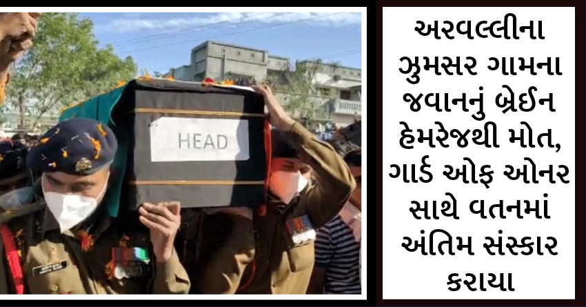 અરવલ્લીના ઝુમસર ગામના જવાનનું બ્રેઈન હેમરેજથી મોત, ગાર્ડ ઓફ ઓનર સાથે વતનમાં અંતિમ સંસ્કાર કરાયા