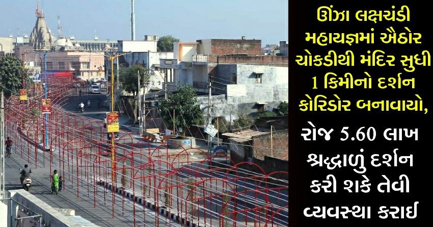 ઊંઝા લક્ષચંડી મહાયજ્ઞમાં ઐઠોર ચોકડીથી મંદિર સુધી 1 કિમીનો દર્શન કોરિડોર બનાવાયો, રોજ 5.60 લાખ શ્રદ્ધાળું દર્શન કરી શકે તેવી વ્યવસ્થા કરાઈ