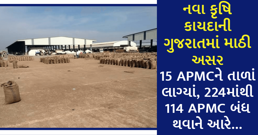 નવા કૃષિ કાયદાની ગુજરાતમાં માઠી અસર, ગુજરાતની 15 APMCને તાળાં લાગ્યાં, 224માંથી 114 APMC બંધ થવાને આરે…