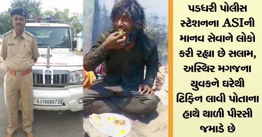 પડધરી પોલીસ સ્ટેશનના ASIની માનવ સેવાને લોકો કરી રહ્યા છે સલામ, અસ્થિર મગજના યુવકને ઘરેથી ટિફિન લાવી પોતાના હાથે થાળી પીરસી જમાડે છે