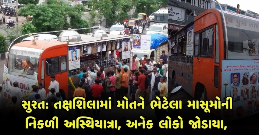સુરત: તક્ષશિલામાં મોતને ભેટેલા માસૂમોની નિકળી અસ્થિયાત્રા, અનેક લોકો જોડાયા,